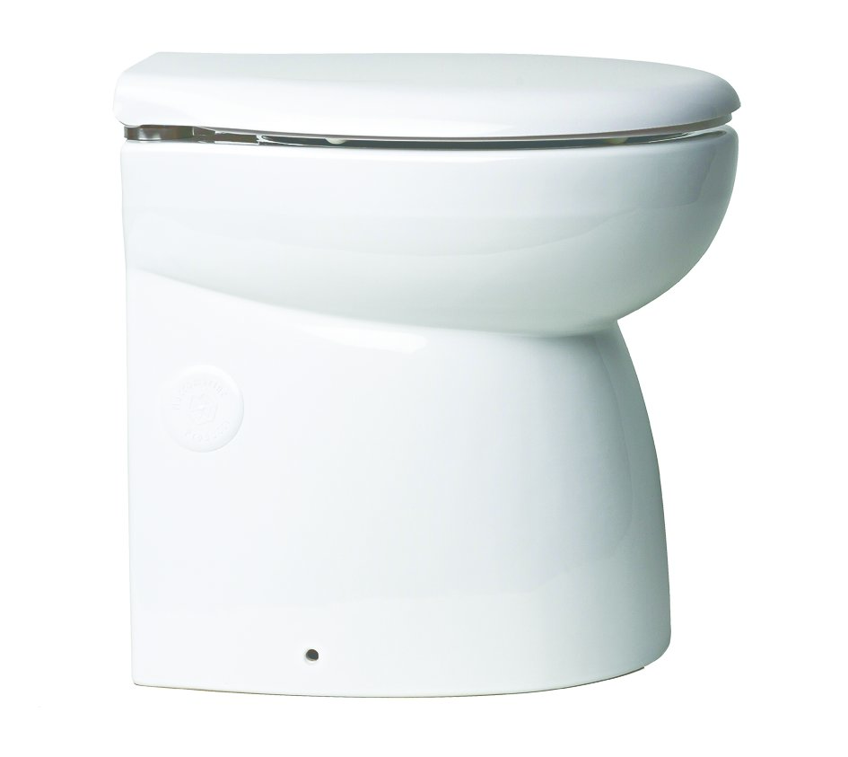 The well proven and popular electric standard toilets with combined pump unit for flushing and wasting. All metal parts and screws are in stainless steel. The base is in impact resistant material It can be installed either above or below the sea level. A special macerator pump allows the expulsion up to 3.50 m in height. Self priming up to 1,5 mt. vertically. Equipped with seat lid and control panel. Port connections: inlet. 19mm. 3/4” and outlet 25/38mm. 1 1/2”